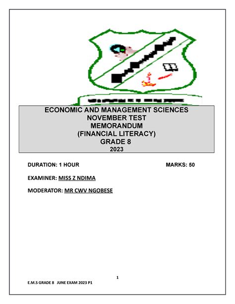 Title: - grade memorandum ems final exam