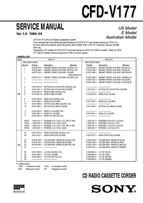 Title: - sony cfd v177 operating instructions primary manual repair service manual user guides