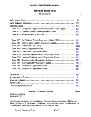In contrast to in advance of, when evaluations were still challenging to succeed in, people today can now utilize the internet to go to many overview sites and skim evaluations about a specific payroll procedures manual section b codes index guide penned by readers. Should you have an usage of the world wide web, then this shouldn't be a dilemma.