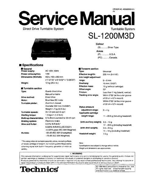 Title: - technics sl 1200m3d manual